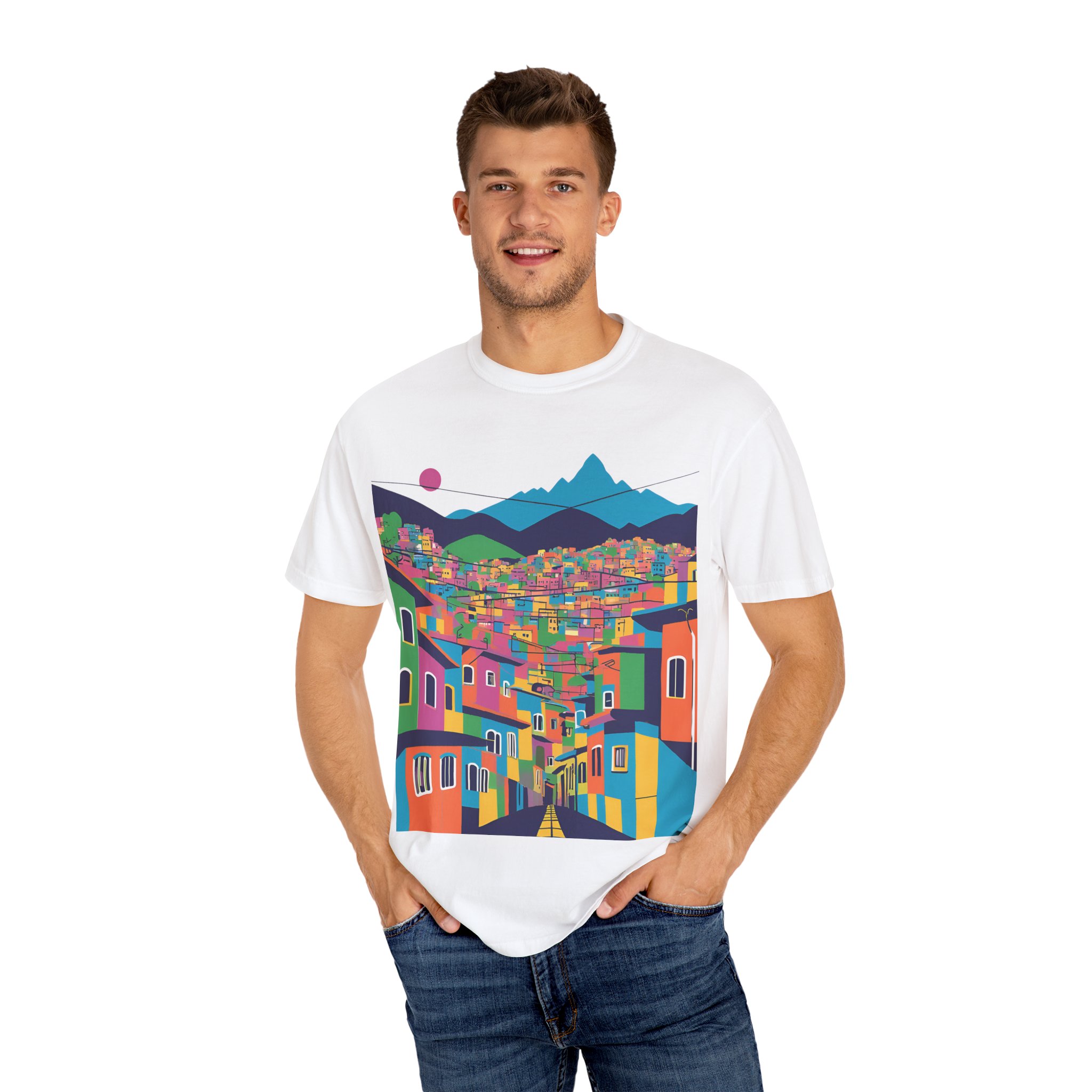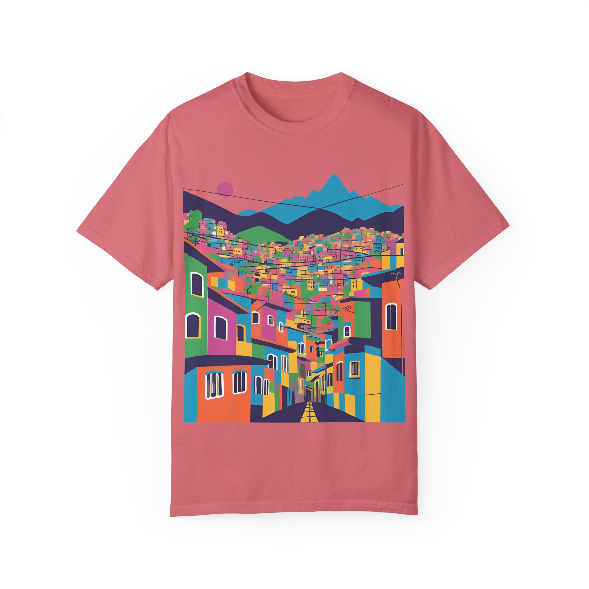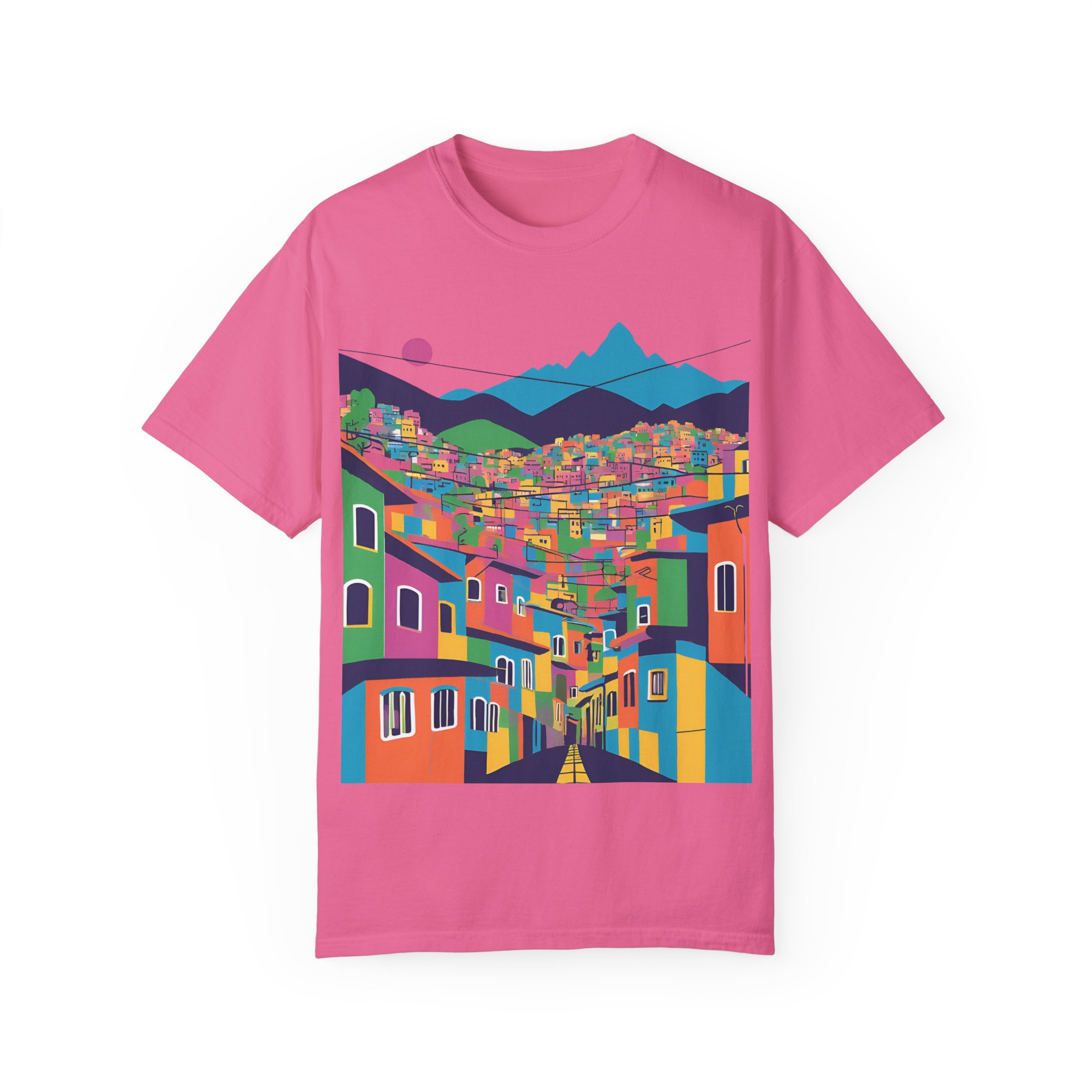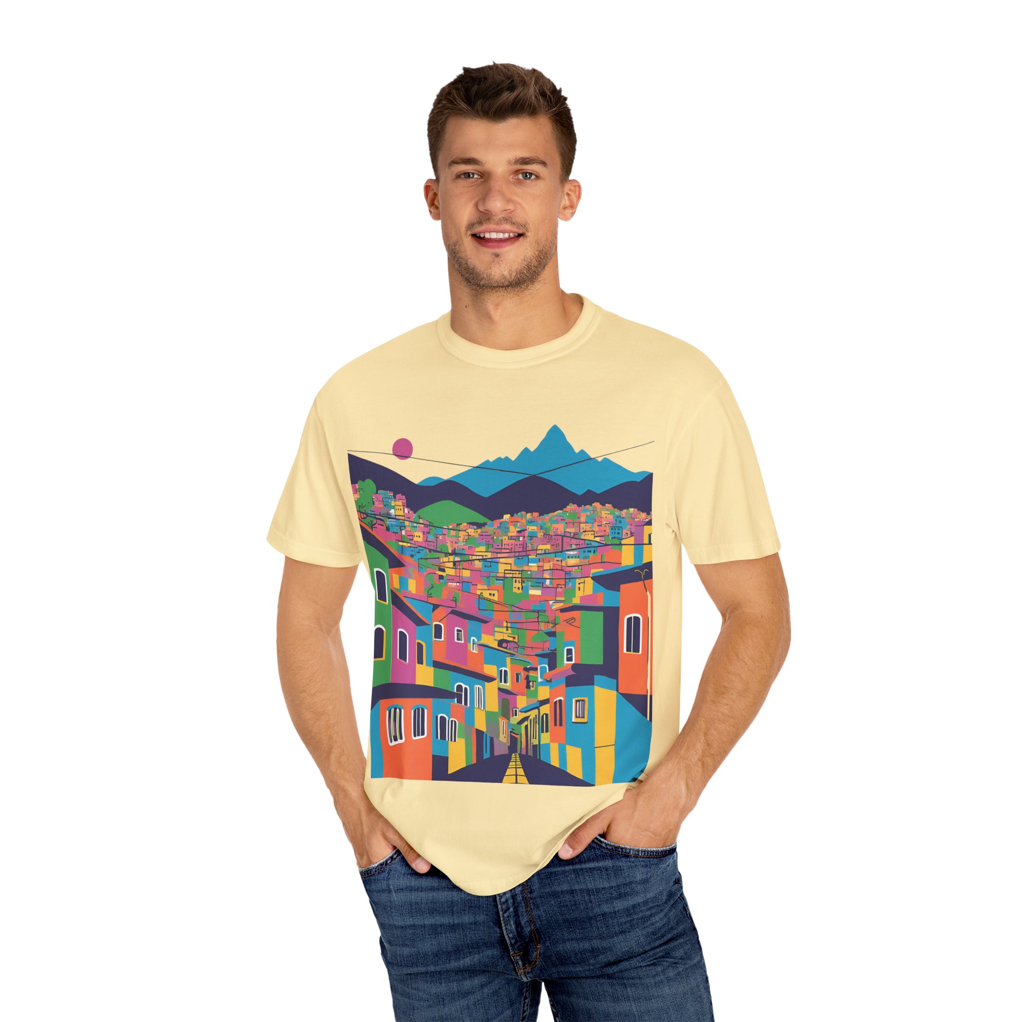 Elevate your wardrobe with this vibrant Unisex Garment-Dyed T-shirt. With its stunning design inspired by colorful urban landscapes, this shirt brings a sense of adventure and excitement to your everyday style. Perfect for those who appreciate a unique, artistic touch to their clothing, this t-shirt effortlessly combines comfort and flair. Whether you’re strolling through the city or enjoying a casual weekend getaway, this shirt fits seamlessly into your lifestyle.