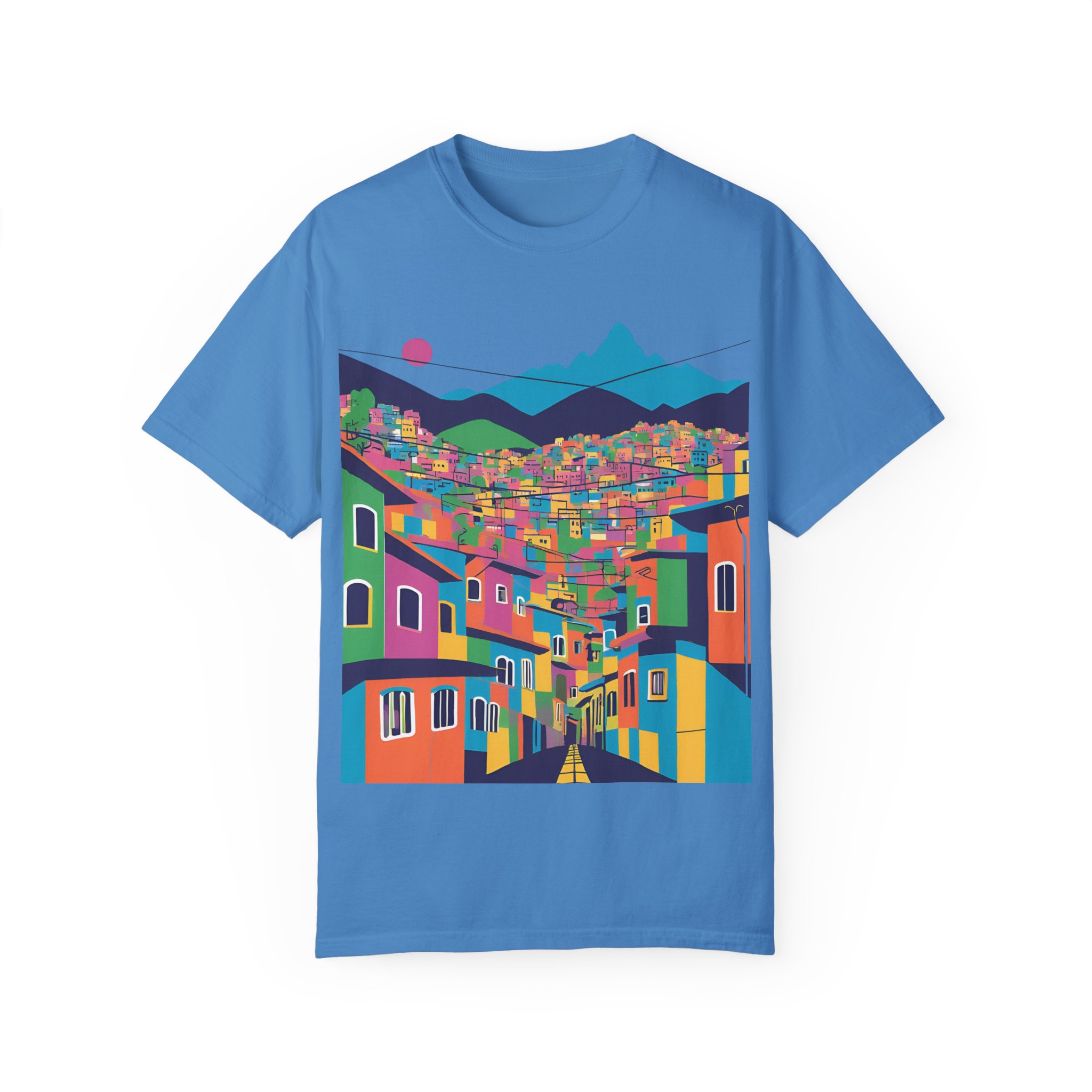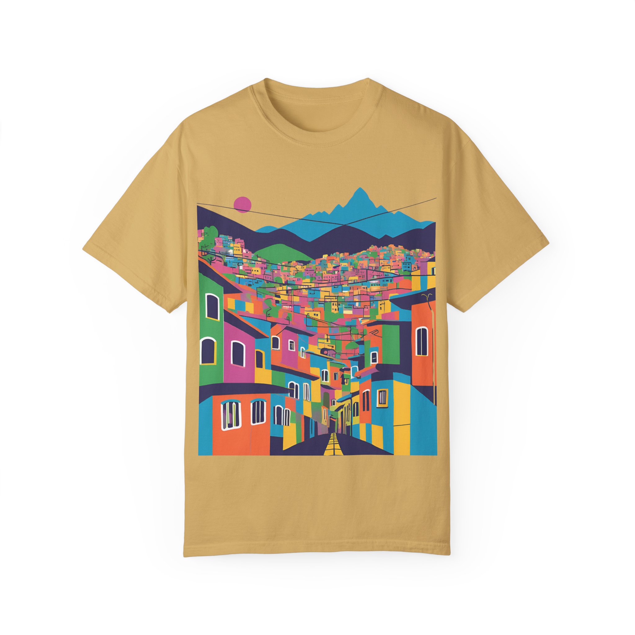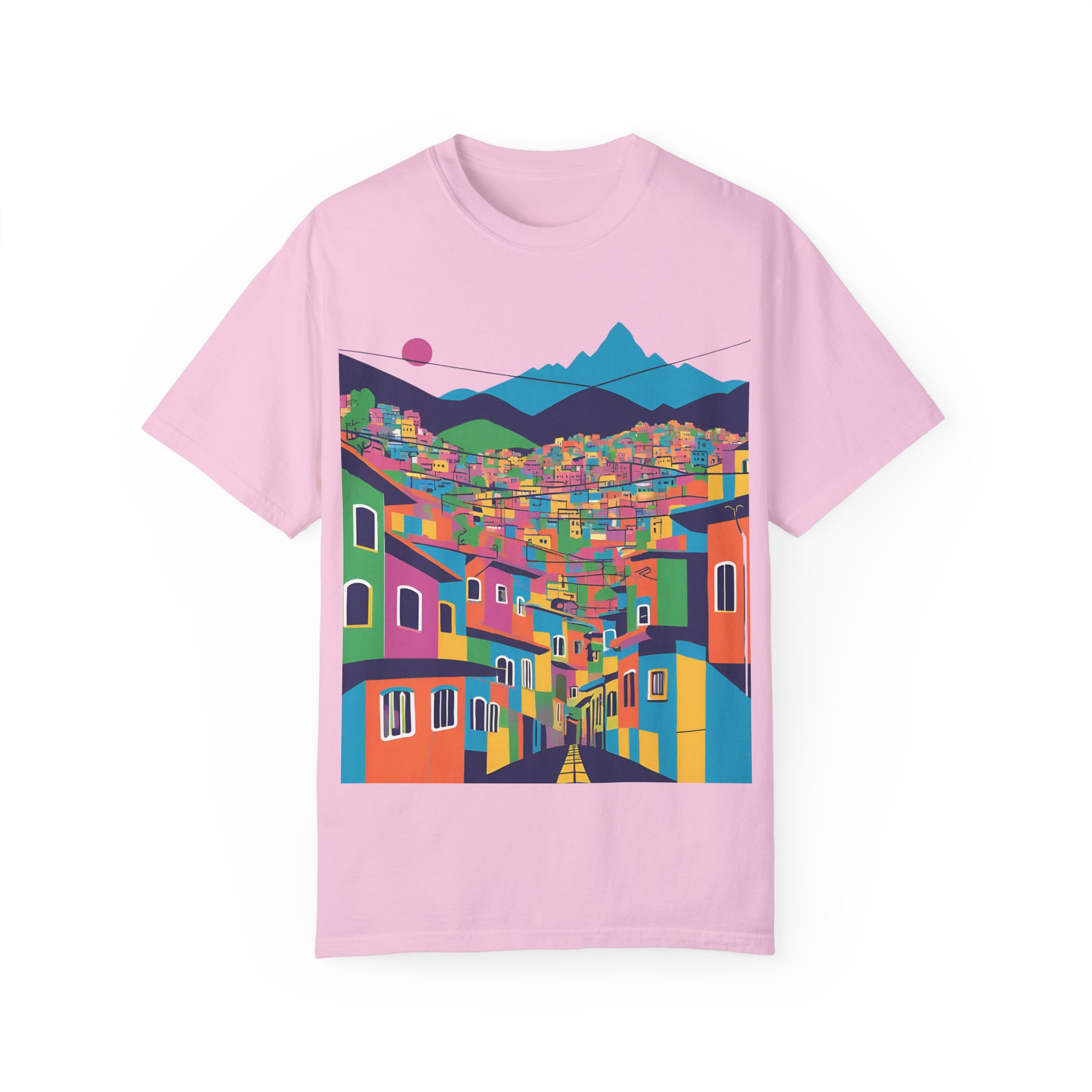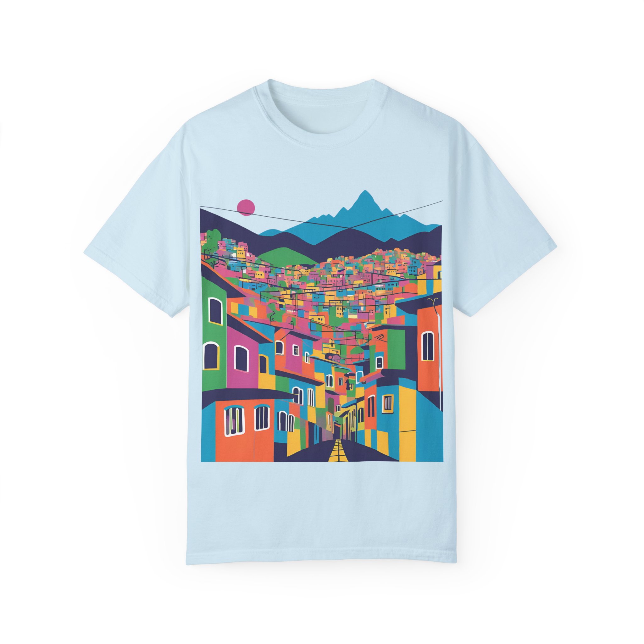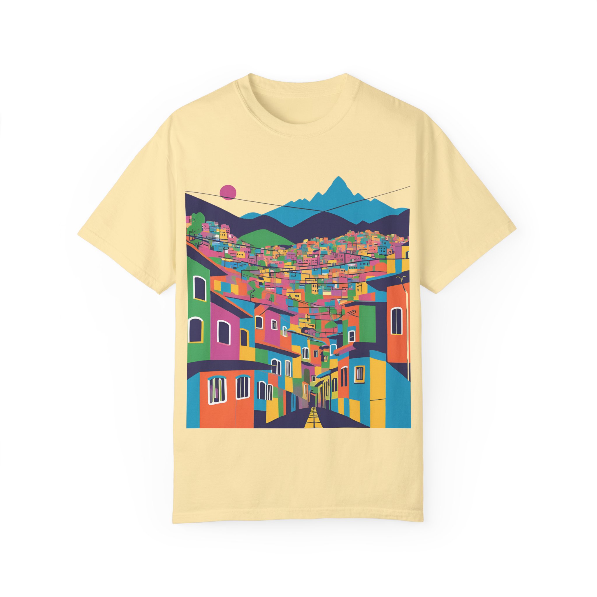 Elevate your wardrobe with this vibrant Unisex Garment-Dyed T-shirt. With its stunning design inspired by colorful urban landscapes, this shirt brings a sense of adventure and excitement to your everyday style. Perfect for those who appreciate a unique, artistic touch to their clothing, this t-shirt effortlessly combines comfort and flair. Whether you’re strolling through the city or enjoying a casual weekend getaway, this shirt fits seamlessly into your lifestyle.