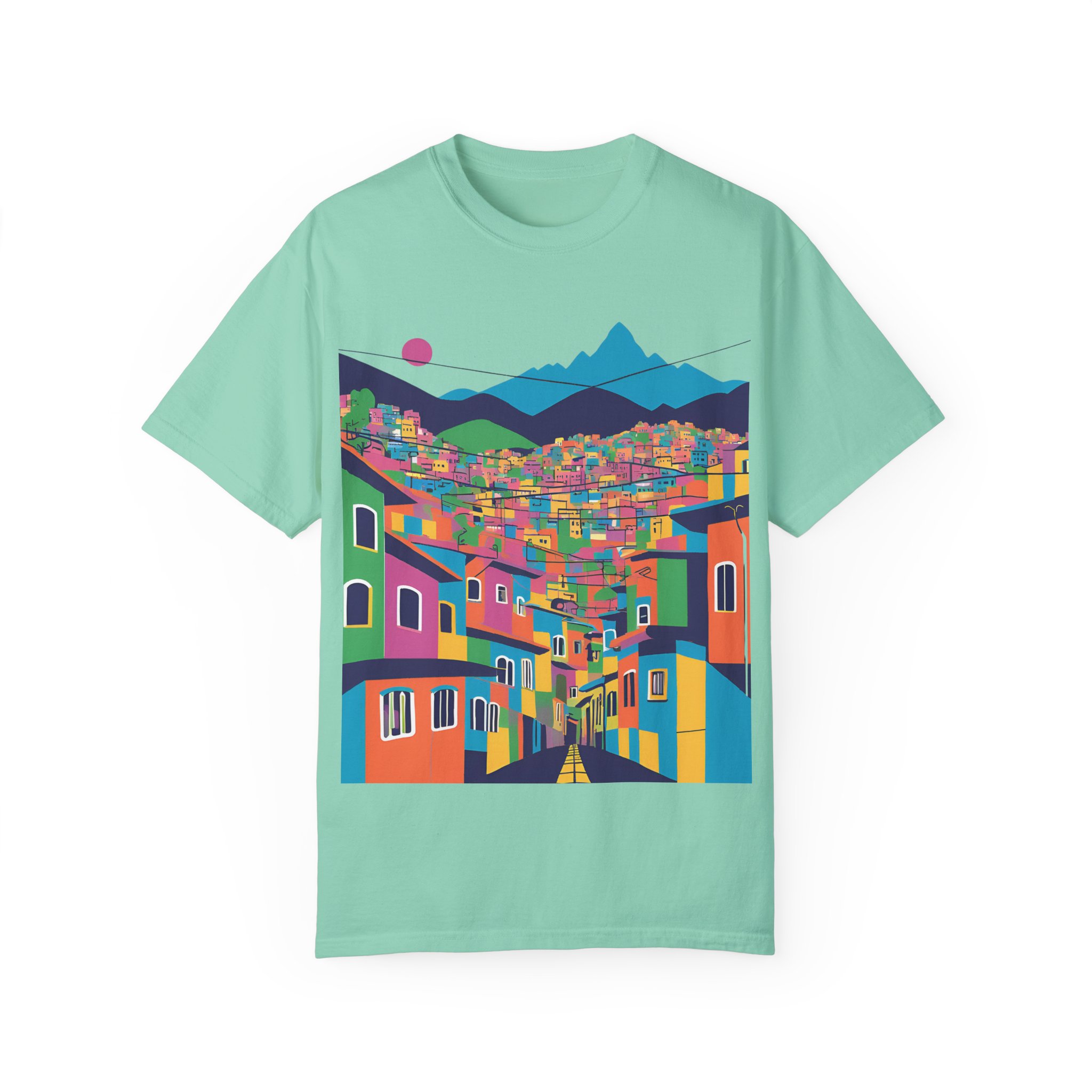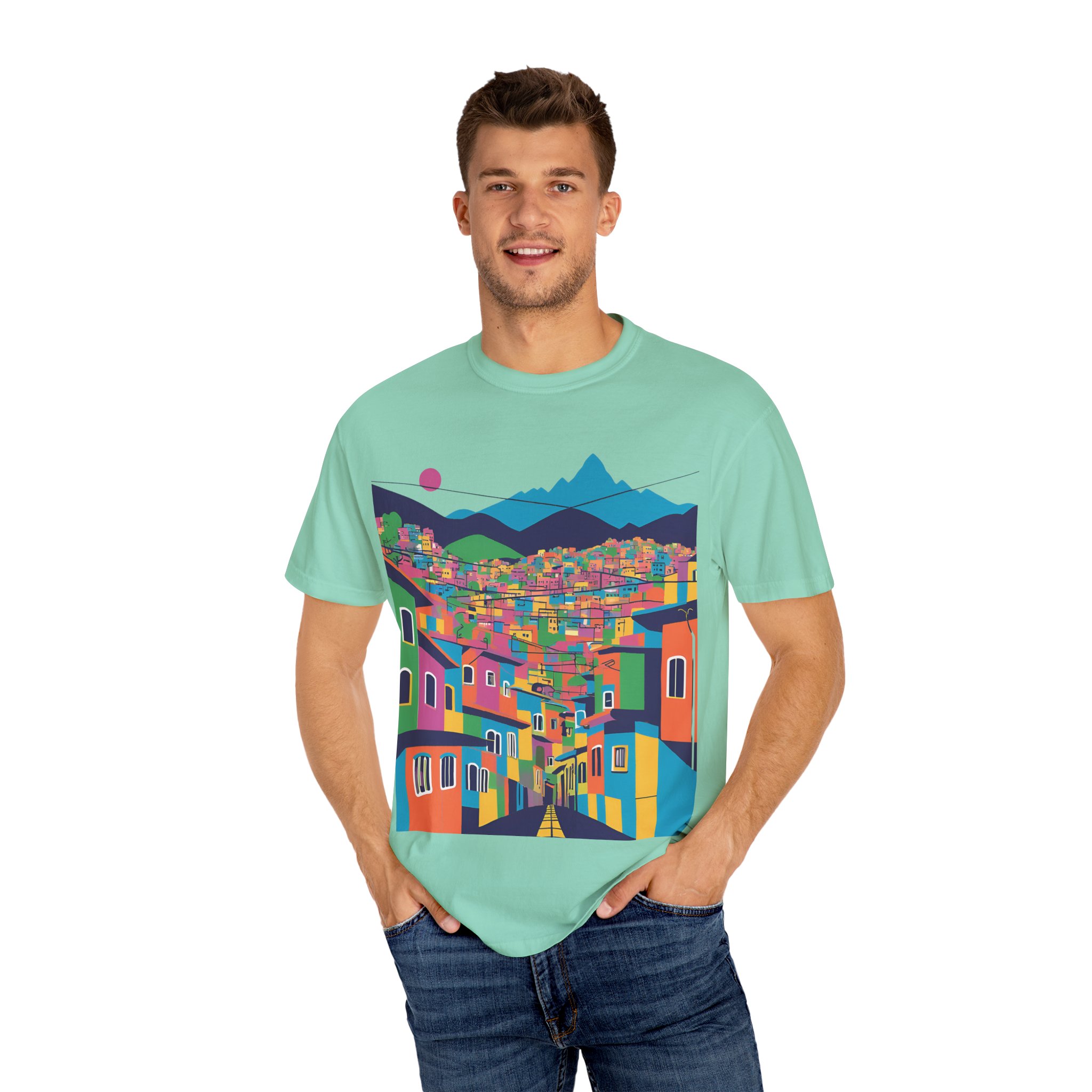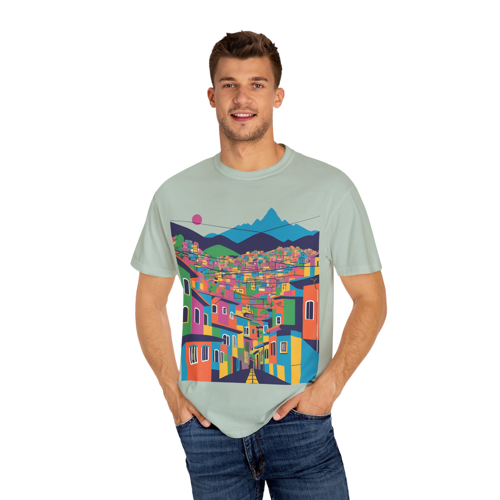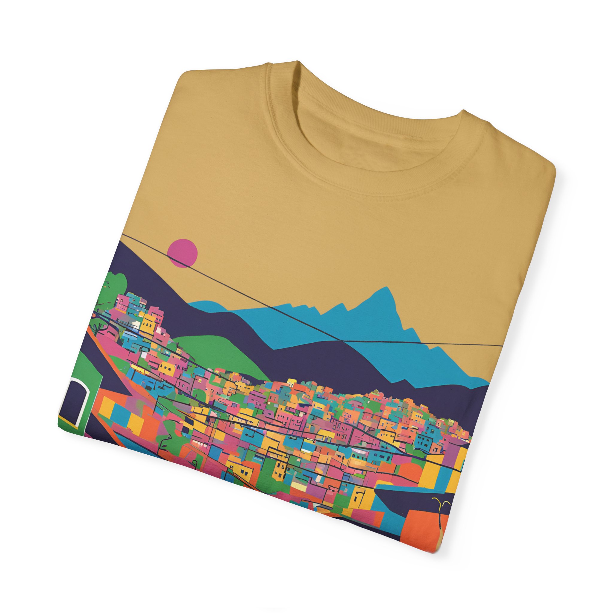 Elevate your wardrobe with this vibrant Unisex Garment-Dyed T-shirt. With its stunning design inspired by colorful urban landscapes, this shirt brings a sense of adventure and excitement to your everyday style. Perfect for those who appreciate a unique, artistic touch to their clothing, this t-shirt effortlessly combines comfort and flair. Whether you’re strolling through the city or enjoying a casual weekend getaway, this shirt fits seamlessly into your lifestyle.